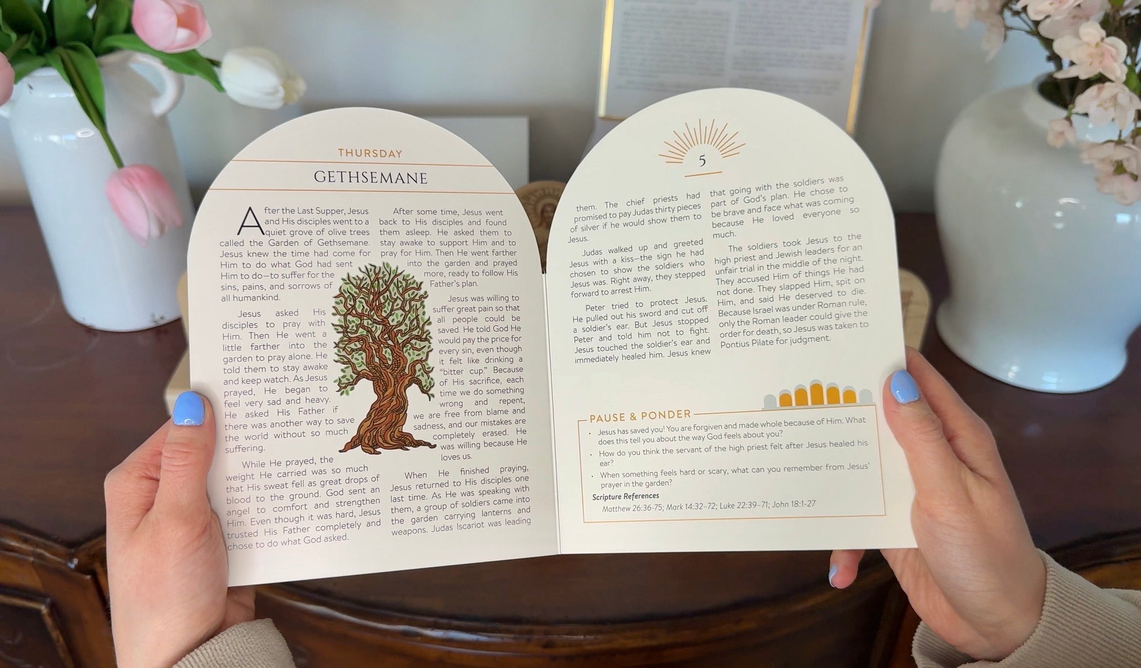 Use the coordinating story from the Holy Week book to guide a short daily lesson. Each reading highlights a key moment from the Savior’s final week—from His triumphal entry into Jerusalem to His Resurrection on Easter morning—based on the King James Version of the New Testament.
